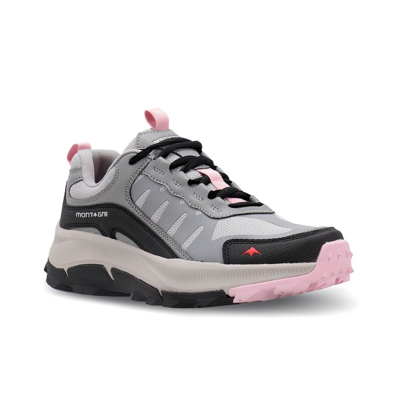 Material exterior: mesh transpirable y refuerzos en poliuretano en talón y puntera. Material de la suela: eva inyectada con tecnología HALFLOAT, compuesta por materiales de alta densidad que le brindan al pie una pisada súper confortable con gran amortiguación. Tecnología ULTRA TRACK, diseñada con agarres multidireccionales que impiden el deslizamiento del pie en planos inclinados, y terrenos inestables. Tipo de ajuste: cordones.